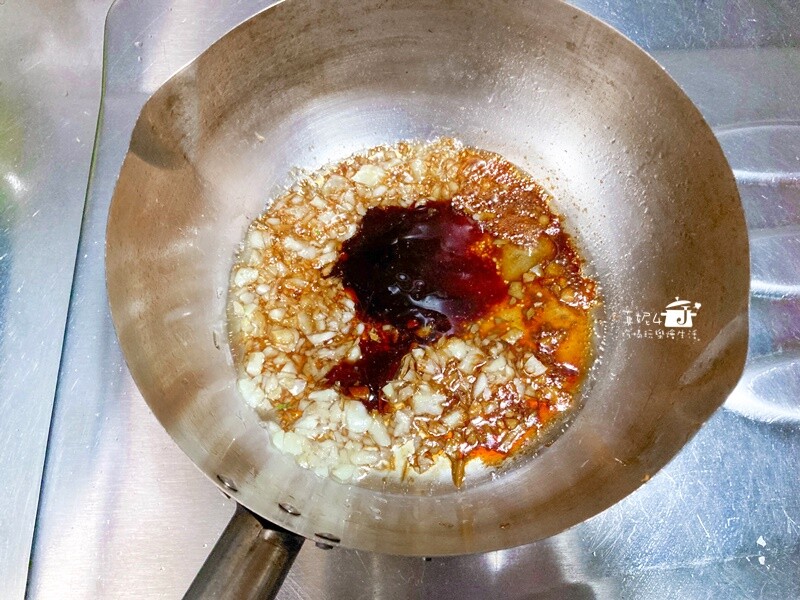 雪平鍋放一湯匙油加熱炒出薑蒜香氣後放入醬油膏/醬油/糖,糖要炒出焦糖味(融化)後倒入燙好牛肉裡