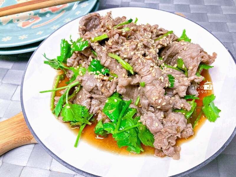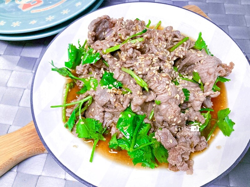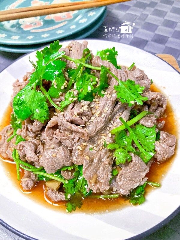 涼拌香菜牛肉材料簡單做法快速,牛肉片清香滑嫩隔餐的風味更好吃