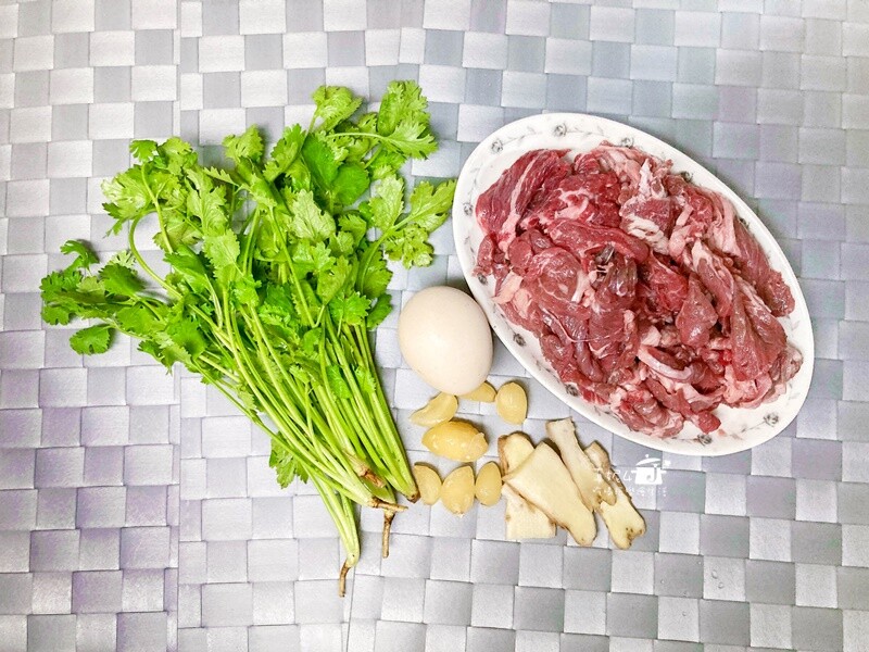 香菜洗淨擦乾去頭切2公分小段,薑蒜切小末,其它材料量秤備妥