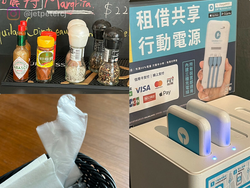 服務人員相當親切有笑容,店內有豐富的辛香料可以自由取用,餐具盒內也有隱藏版的手套,吃漢堡不怕弄髒手喔~還有行動電源可以付費租借,真的很方便~