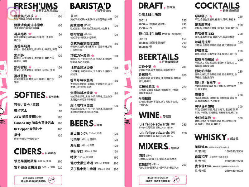 野獸美式餐廳飲品單(2023.7最新菜單)