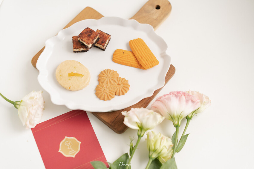 除了新禮盒,還有新推出四款小點心,兼具創意以及美味度的新款呢。首先是讓我滿驚喜的經典檸檬糖霜,以招牌檸檬糖霜和蜜漬橙皮的搭配組合,入口的瞬間還以為自己吃了塊老奶奶檸檬蛋糕呢,這樣風味的餅乾是初嚐!接著是英式紅茶與特調比例的牛奶完美混搭的英式紅茶拿鐵曲奇,香濃的茶香,是會讓女生著迷的口味;有些膩口的話再來一塊充滿濃郁起司與煙燻紅椒香的,大人味義式香料起司吧,我不是個特別愛吃鹹餅乾的人,但這塊真讓我驚艷了,每口都很清爽呢。