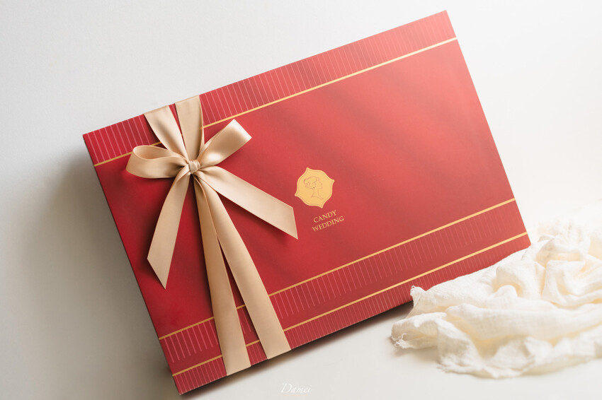 Candy Wedding向來在設計上都是很細膩的,霧面金的提袋顯得高雅,仔細看還有一串文字寫著對新人的祝福!此外禮盒裡的婚卡也是能與品牌做溝通設計的唷。