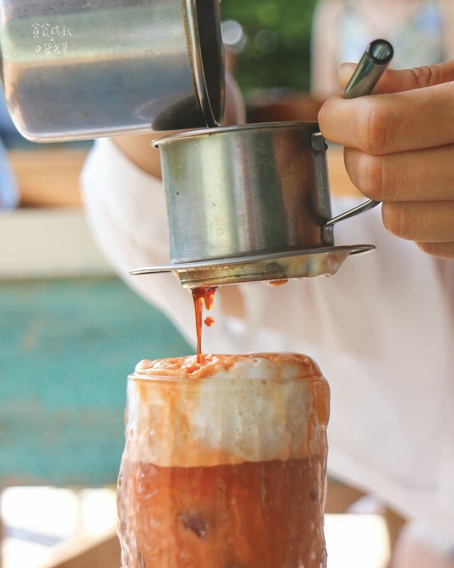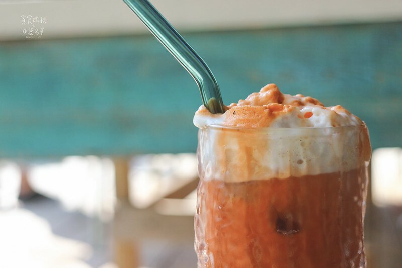 這泰奶超特別,下面是冰塊、煉乳及奶泡,熱騰騰手標茶的濾進杯子內超療癒!