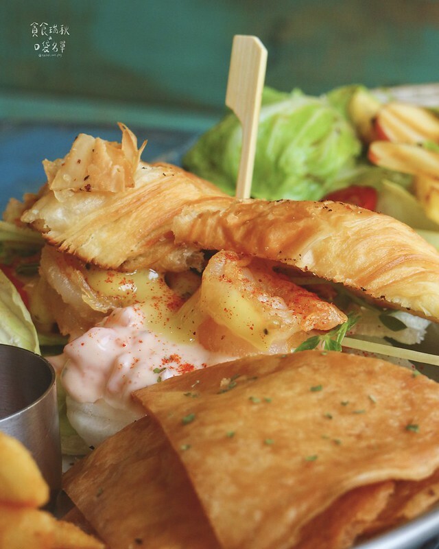 香酥可頌裡頭包裹著蝦仁及龍蝦沙拉