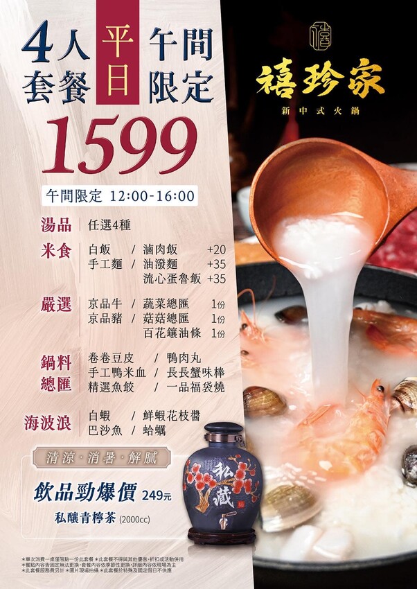 禧珍家中式火鍋 | 1599平日午間4人套餐