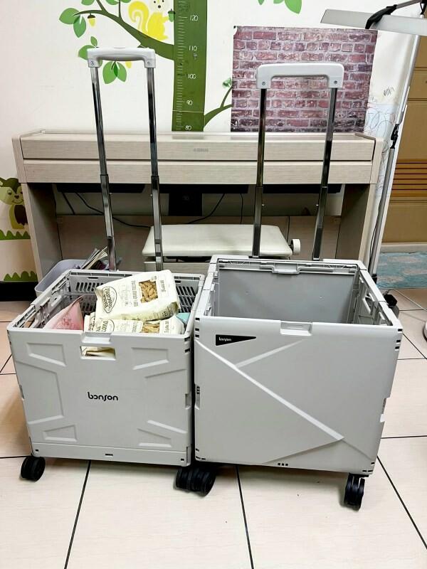 熱騰騰的Bonson折疊推車到貨,輪子是四萬向輪,萬向輪的意思就是俗稱的360度輪,輪子做得好,每個方向都好拉! Tiss建議直接買大款,因為大款的容量真的很實用,可以裝超多東西、耐重60kg!下單點我更多開團嚴選好物