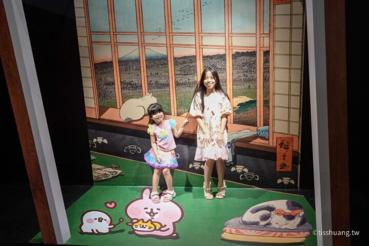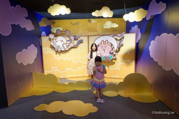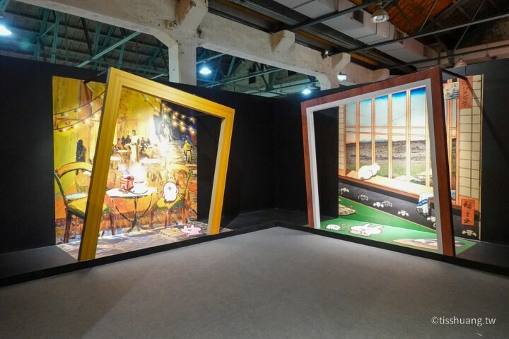 首先看到的是以畫框做為卡娜赫拉的小動物荒唐世界博物館入口的裝飾,主題人物粉紅兔兔、P助的場景,讓人走進一種童話世界的感覺