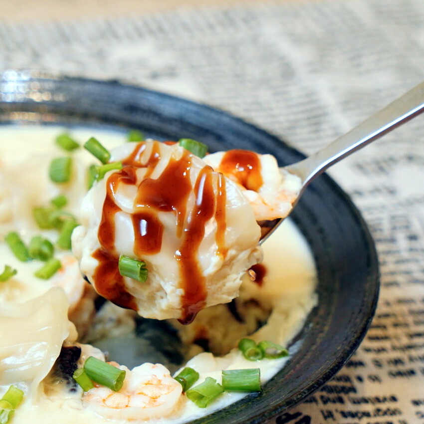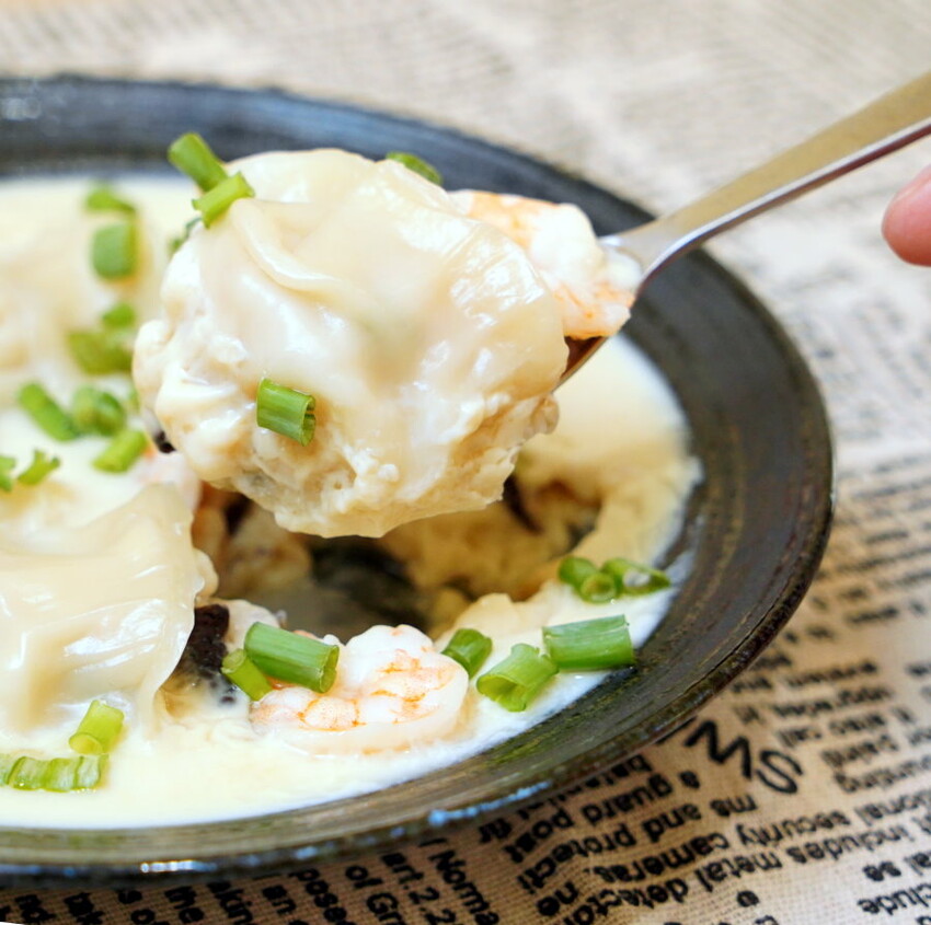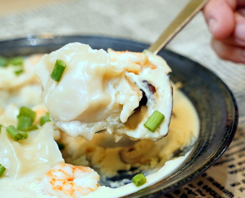 ▼吃起來外皮Q彈,內餡鮮美多汁,搭配滑嫩的蒸蛋、鮮蝦、香菇,鮮甜又好吃!!