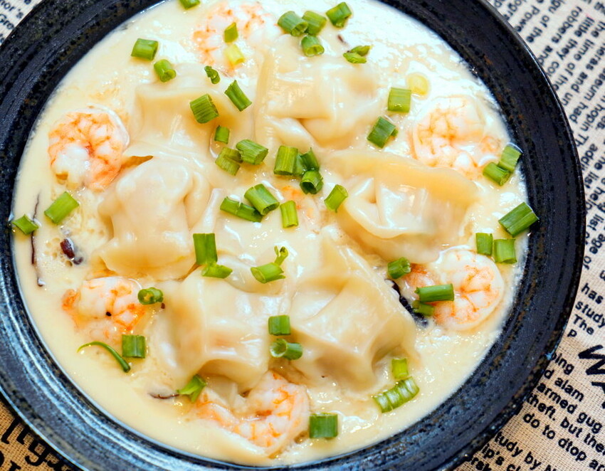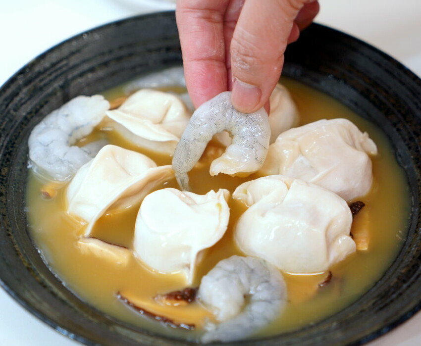 ▼最棒的吃法就是直接挖一顆水餃起來,跟鮮蝦、蒸蛋、香菇一起享用~~層次更多元!