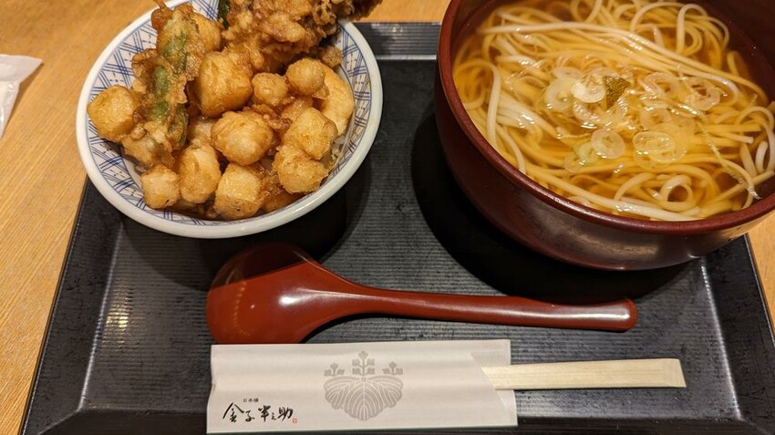 在這裡可以吃到稻庭烏龍麵和金子半之助招牌的炸天婦羅飯組合。飯可以從「高菜飯」、「奢華海鮮飯」、「魷魚海鮮炸飯」三選一,搭配起源自秋田縣湯澤市的稻庭烏龍麵。