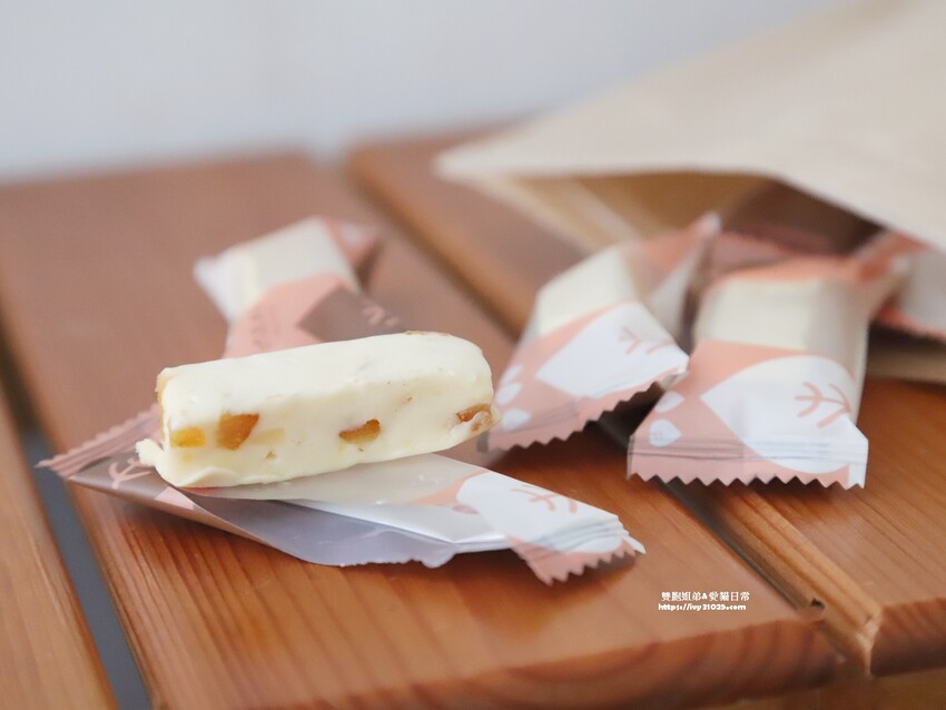香橙牛軋糖以柳橙果乾當作內餡,不僅可以吃到香軟Q糖的手工SPA揉糖,還可以聞到香氣飄逸的柳橙味道。