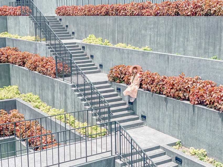 「南門公園」是近年IG爆紅新景點,還號稱是「最美的停車場」,南門公園停車場設計非常新穎,採用下沈式廣場及天井設計,將公園綠意及陽光帶入原本應闃靜黑暗的停車場,灰白色的外牆植入綠意植栽、紅花簇擁,讓層層樓梯堆疊出鮮明的層次感!使用輝呼吸的環保建材、具建築美感的設計,因此吸引了許多網美來拍照,成為一處新興打卡景點。