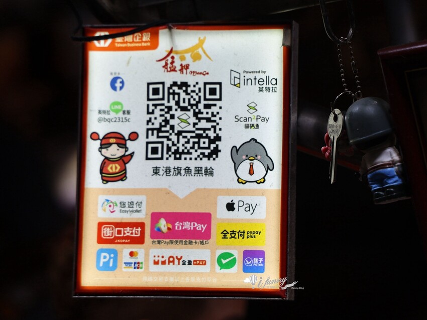 果然是觀光夜市,艋舺夜市東港旗魚串支援多元電子支付,老闆及工作人員都不碰錢,這樣也比較講究衛生的。