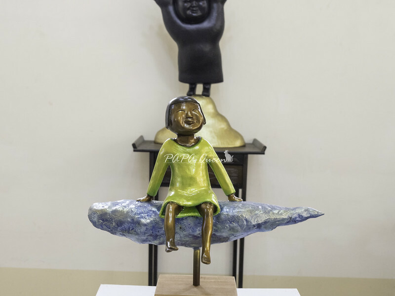 隱藏在山林間的雕塑藝術家-我是熊工作室,坐在雲上發呆的女孩他爹 (陳士雄)笑著說…這孩子是這樣出現的,她就這麼從腦袋裡蹦出來,捏捏捏著小小的女孩就笑瞇了眼出現在眼前伸手拽朵雲就這麼坐下了,看看雲看看天空開始發呆放空!!