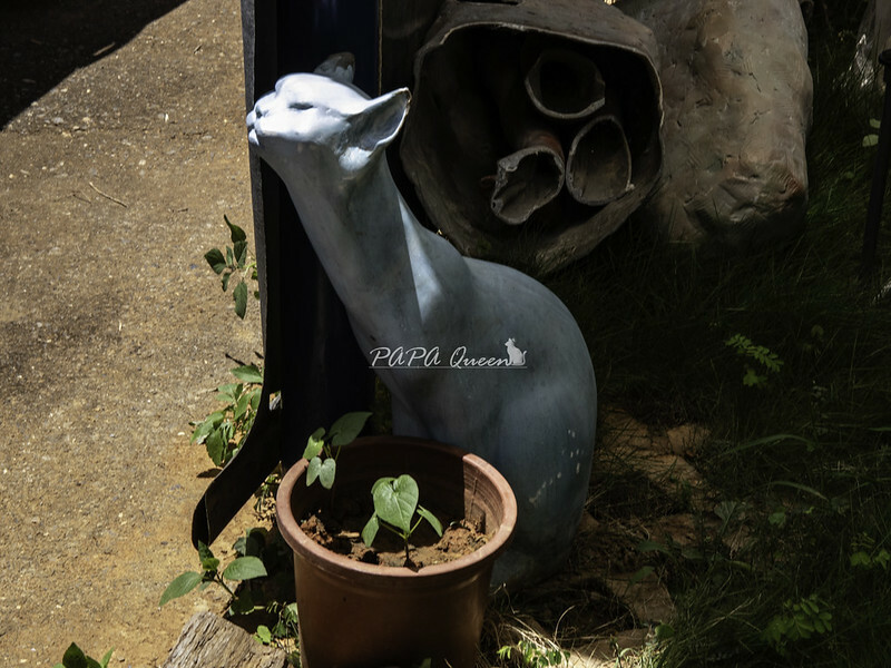 我是熊工作室就在這鐵皮屋後面歡迎參觀,踏入這裡第一眼就看見”它” 貓的雕塑 優雅曲線帶著一點親人姿態輕輕靠著牆角,這是貓展現親人的模樣,身為貓奴一眼就能看懂!後來才知 貓是余燈銓大師的作品(2010-貓的狂想曲其中的作品)
