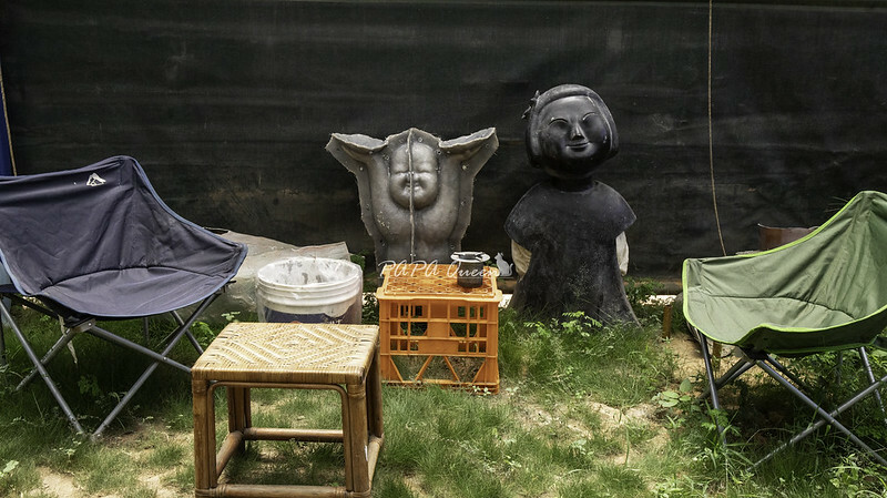 庭院也是雕塑藝術創造的工作場,陳老師笑說大型的雕塑需要翻模要倒銅,每一件作品的誕生都需要一點時間!