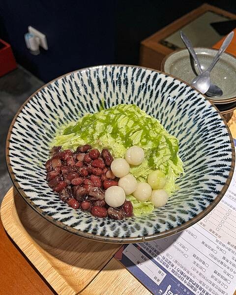 飯後會附上甜點 抹茶紅豆麻糬冰