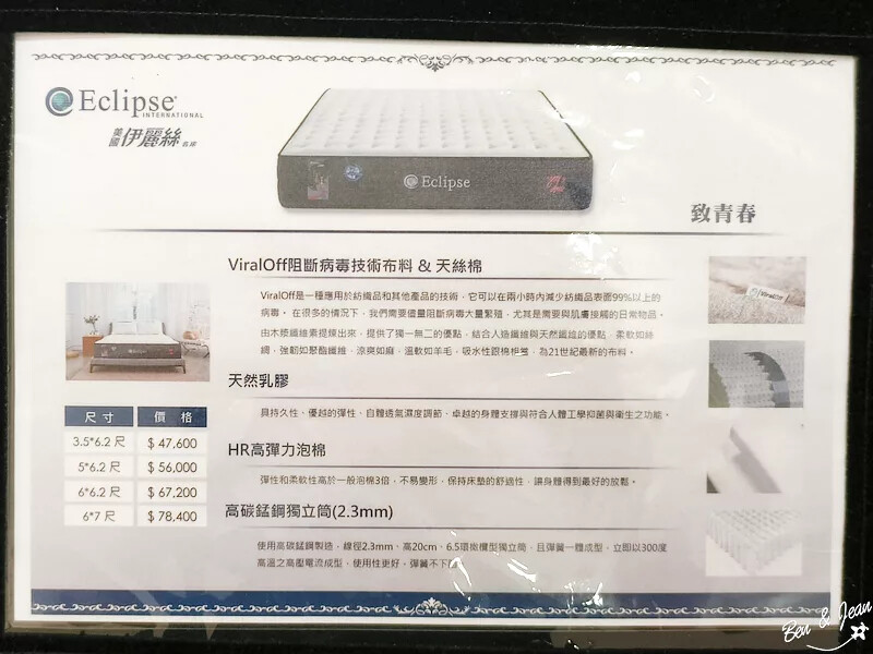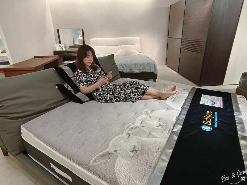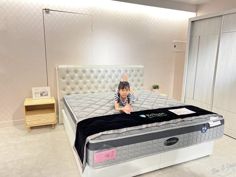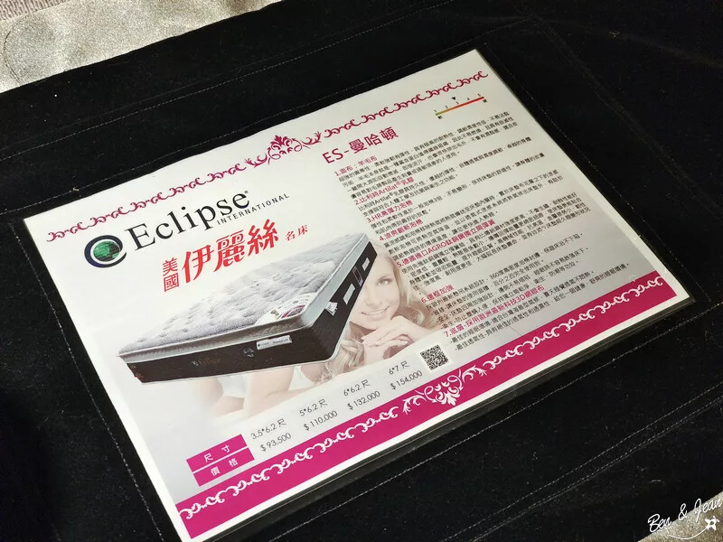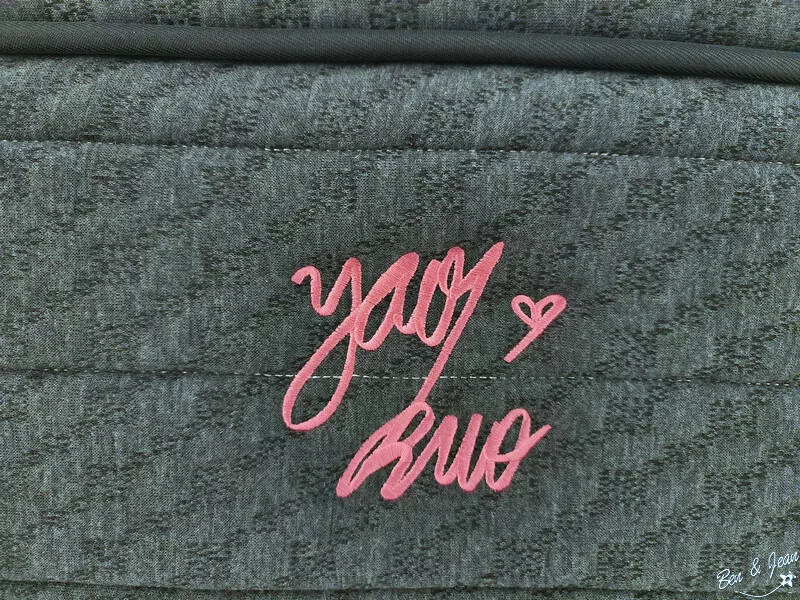 因為這次美國Eclipse伊麗絲床墊請來藝人郭書瑤作為是2023代言人,所以三款床墊下方都有她的親筆簽名的刺繡聯名款字樣