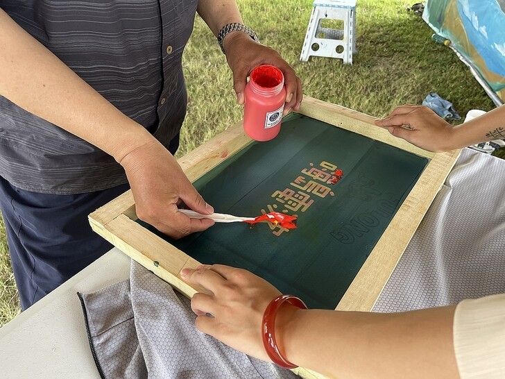 舞台旁帳棚內特別設置絹印工作坊,民眾可邊聽音樂邊體驗絹印手作。