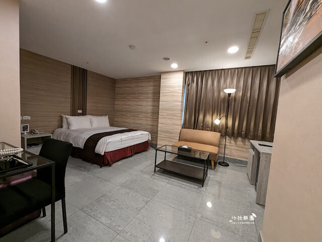 標準雙人房空間也很大,辦公桌、沙發、雙人床,約20平方公尺