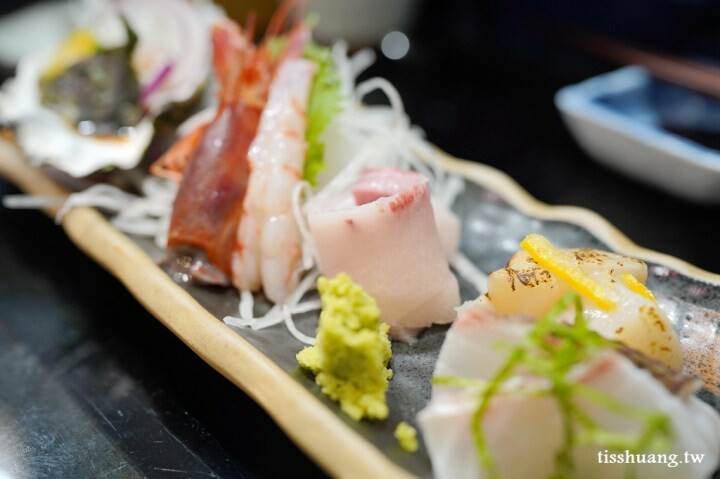 這次吃到的綜合生魚片有:(熊本生蠔、龜山島葡萄蝦、九州鯛、北海道干貝、鹿兒島獅魚肚)