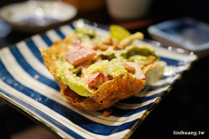 我沒吃過凱撒沙拉的底部搭配沙丁魚苗餅乾,吃進嘴裡就是感覺日式與西式的碰撞,生菜沙拉甜甜的,沙丁魚苗餅乾是鹹鹹脆脆的,非常特別還有豐富的層次感。
