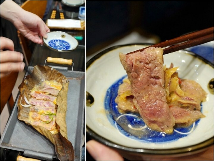 這道菜是直接在我們的桌上現場料理的,牛肉裡的醬汁是用日本味噌、白芝麻醬下去烹煮至五分熟,牛肉的肉質超滑嫩。