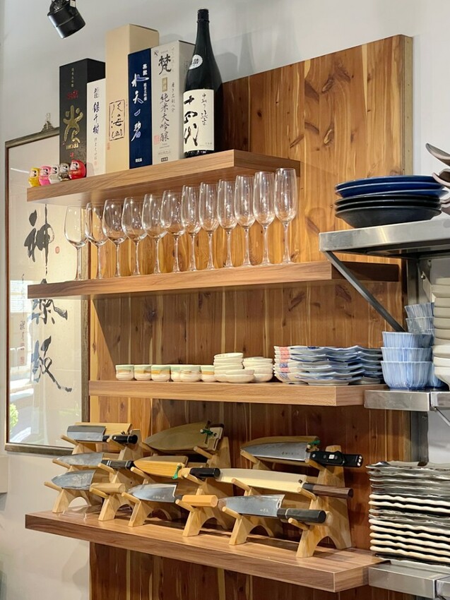 我一進到餐廳就被料理檯後方的這幾把日本料理刀給吸引了,所謂工要善其事,必先利其器,從師傅使用的刀具就能看出他對日本料理的堅持。