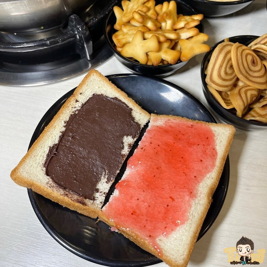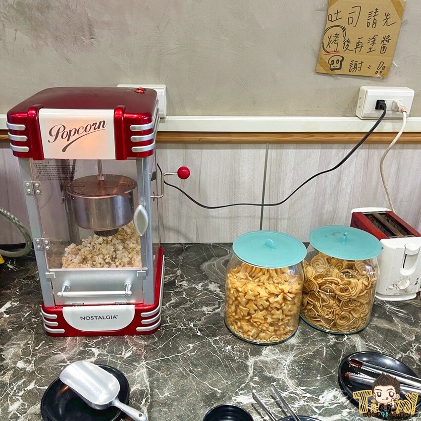 還有小餅乾、爆米花、巧克力醬和草莓果醬吐司可以選擇!
