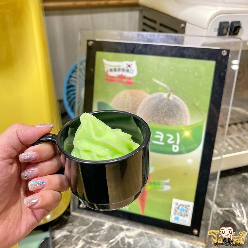 更浮誇的是老闆居然引進霜淇淋機耶!今天吃到的是哈密瓜口味喔