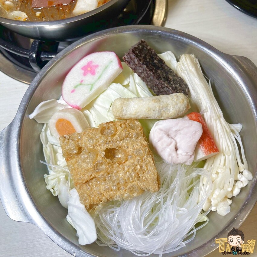 每一個小火鍋除了高麗菜、金針菇、冬粉以外,還有大概7種的火鍋料。