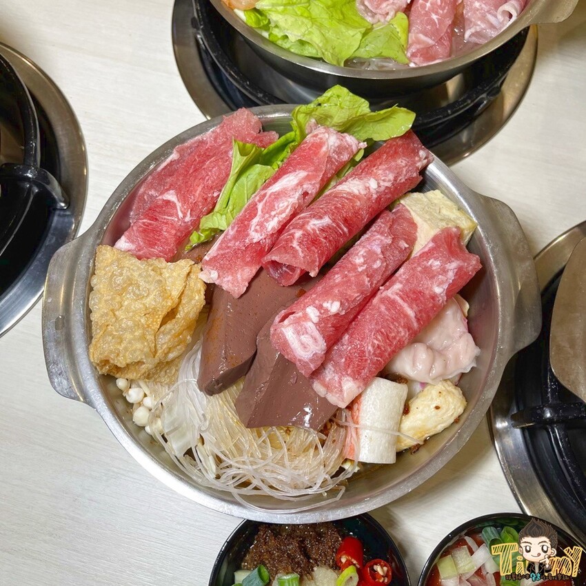老闆特別強調雖然是平價小火鍋,湯頭可都是自己熬製的大骨蔬菜湯,搭配泡菜、沙茶等共有20多種風味可選擇。