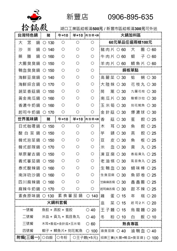 👉拾鍋殿小火鍋 新豐店菜單目錄搶先看