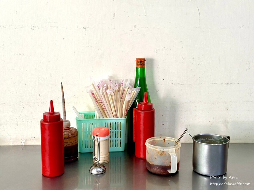 天津路炒麵的醬料區都在桌上,有東泉辣椒醬和眼鏡醋,絕對是炒麵的好朋友!另外還有店家自己調配的辣椒看起來頗香,與蒜泥醬。