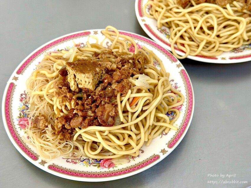 內行人就知道要點綜合麵,就是一半炒麵一半米粉啦!這上頭淋上鹹香的肉燥,吃起來更美味了,我這盤綜合麵的肉燥還有一小塊滷得入味的油豆腐呢。