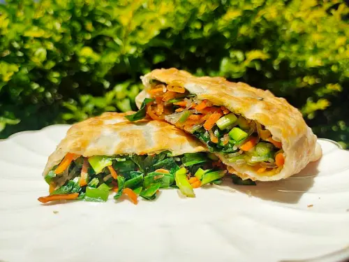 美味的蔥油餅,好喝的西瓜汁,還有滿滿料的韭菜盒子,很適合當作下午點心的選項之一,乾淨的製作環境加上老闆娘親切的態度,讓人會想再回訪。