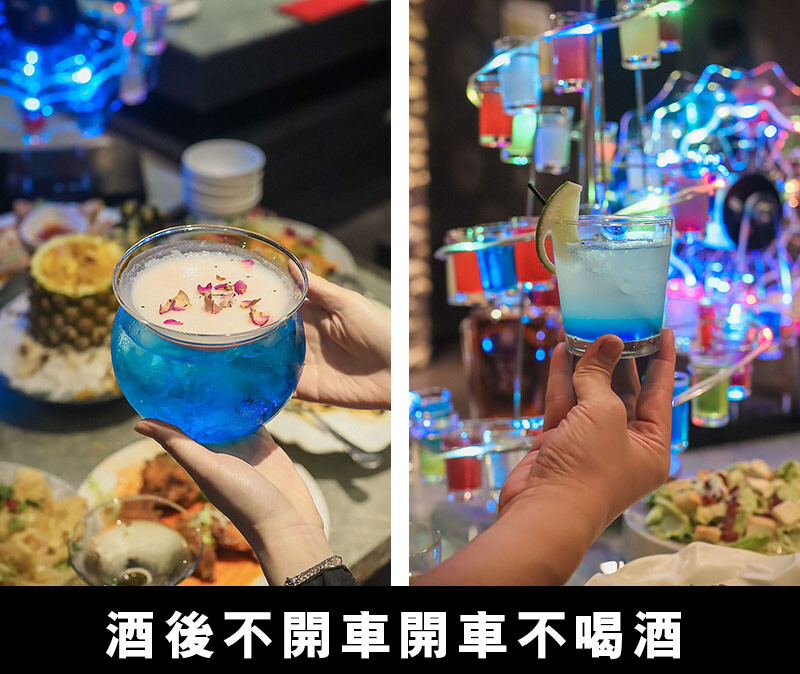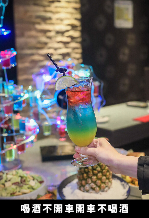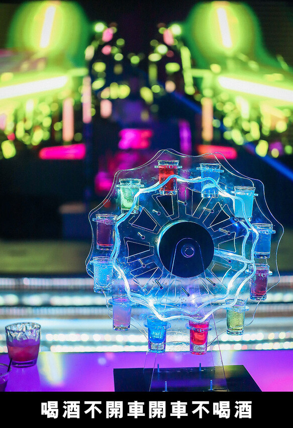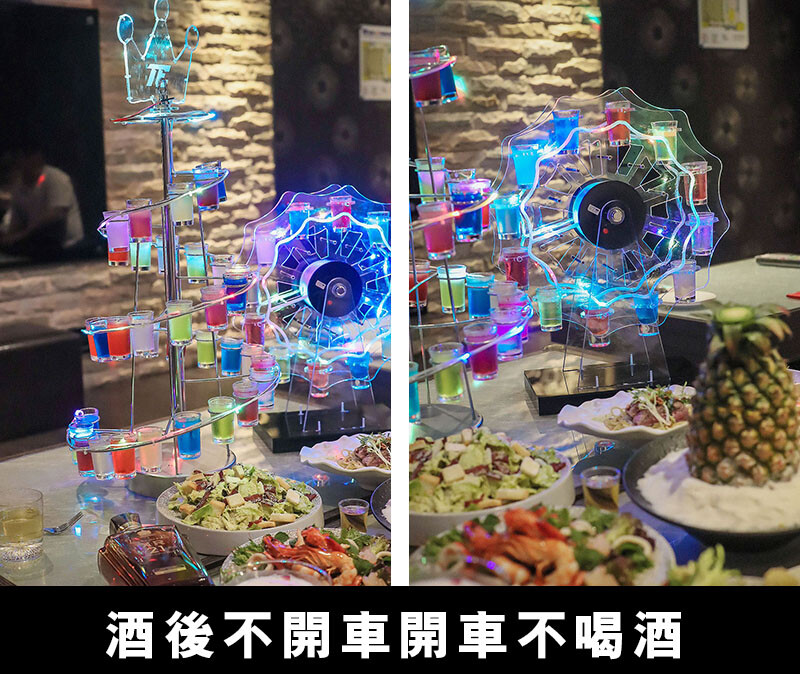 酒品部分不是這個年紀的我的重點,不過好友們點的每一杯也太美了~不留下一點美照可不行;最顯眼的當然還是剛剛舞池裡摩天輪Shot組,以利口酒、甜酒、水果酒調色而成,鮮豔的顏色更點綴著喧嘩的夜色,還是要提醒大家即使是利口酒混著喝也還是容易醉,要多斟酌喔~
