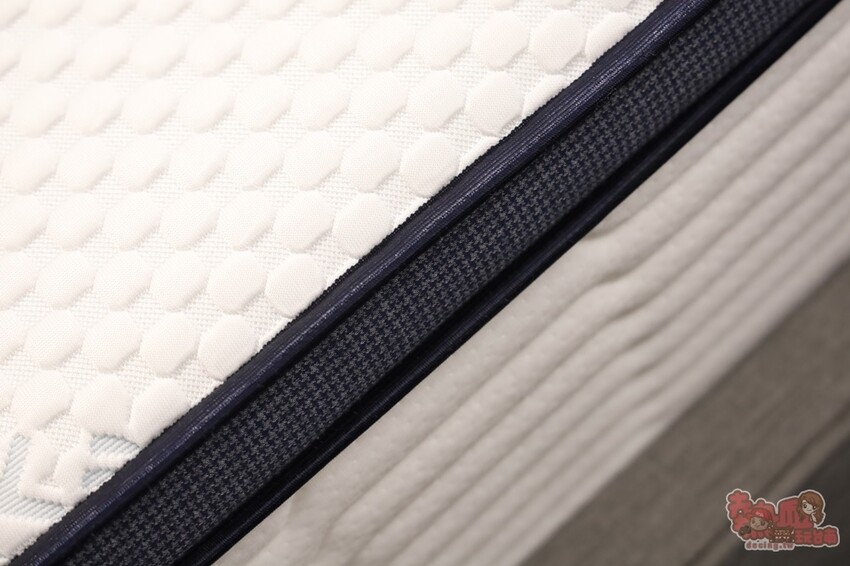 這塊床墊屬於稍微偏硬的材質,上層iCOlD涼感布、加厚天然乳膠層椅及高分子科技棉,床邊還有特別強化泡棉護邊,因此睡起來較堅固更有支撐力。