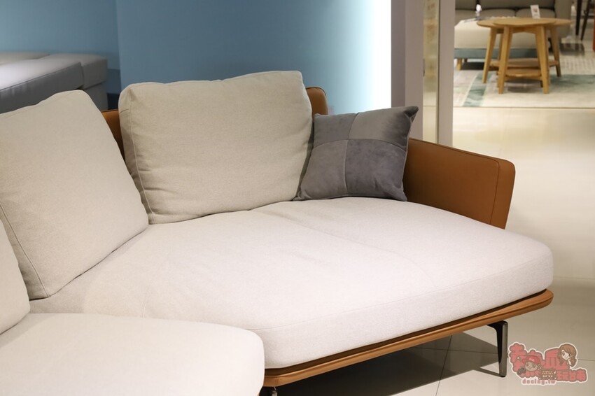 這款沙發高度也比較夠,適合身高較高的人或長者使用,淺灰布料裡是泡棉枕,整個躺起來會非常有支撐力,坐上去身體的頸部、軀幹都會很舒適,難怪我們剛剛在試躺時,心愛a說這張沙發好舒服喔~