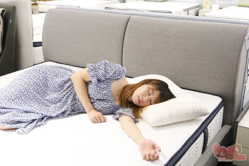 一邊試坐試躺的過程中,陸續試了很多款床墊,最後還看到這張Alonso阿隆索涼感床墊同樣讓人覺得不錯,畢竟南部天氣那麼熱,睡覺需要長時間開冷氣,如果床墊俱備涼感功能,也會為冷氣費省下不少錢。