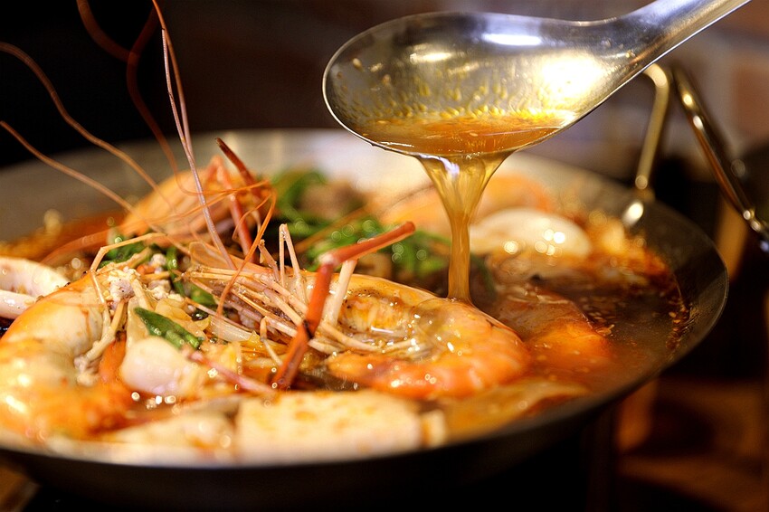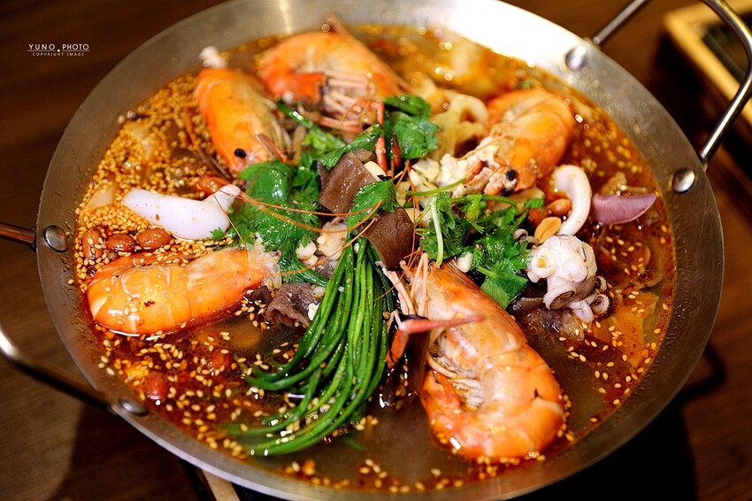 滿足視覺與味覺的極致享受把各種食材放進麻辣湯底煮熟