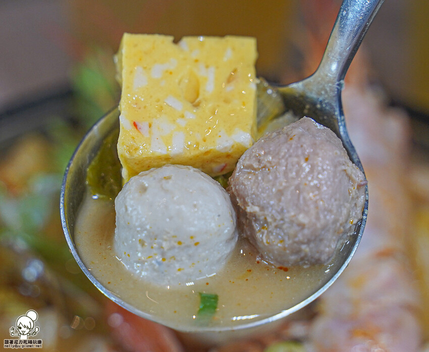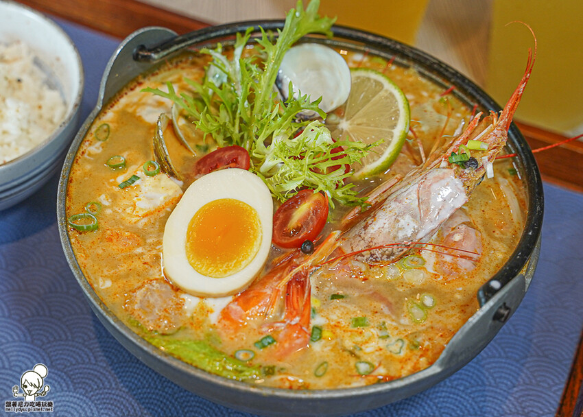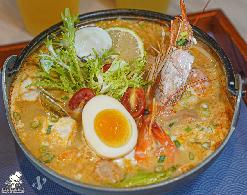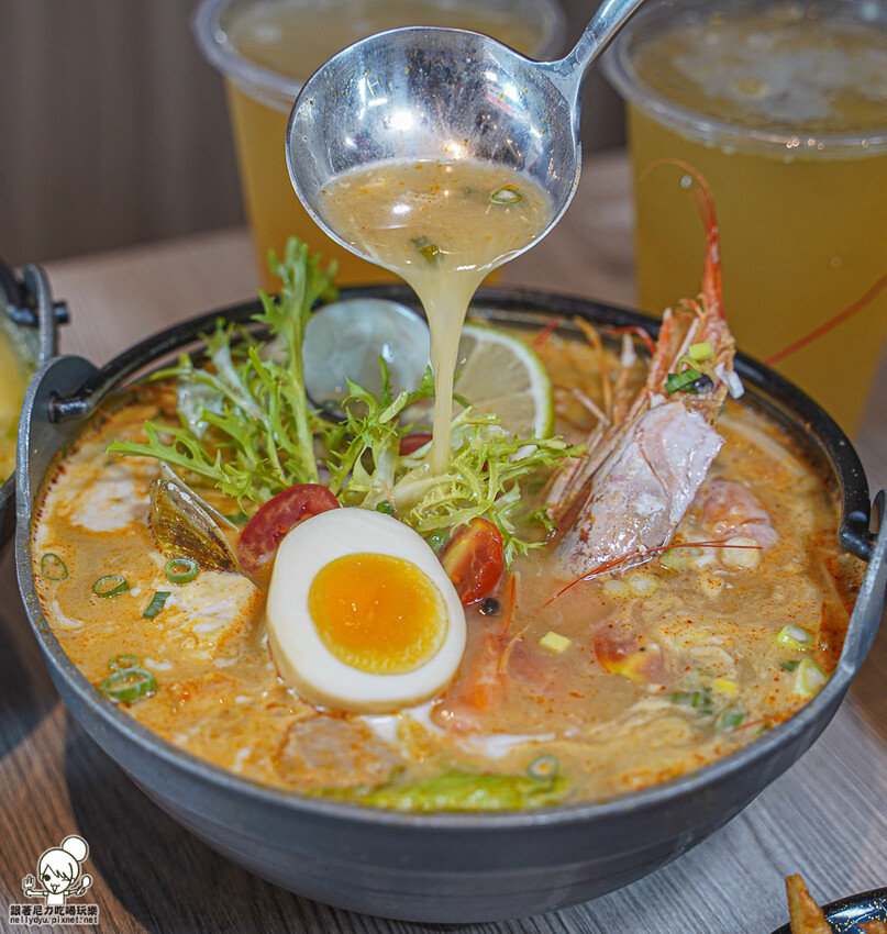 可以先喝一口湯頭,感受南洋泰式風味,酸度、甜味、辣度都很明顯