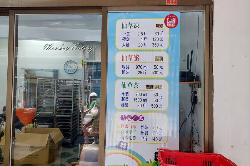 仙草凍跟仙草蜜有提供大小盒裝,甚至還有桶裝的,仙草茶也是人氣商品,幾乎大家都會買好幾罐回家喝