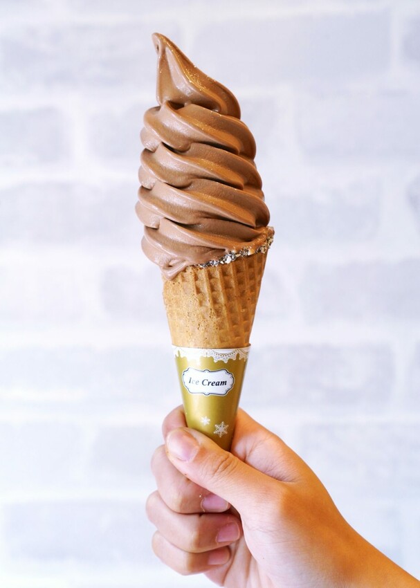 ▼黑雪公主 85% 巧克力霜淇淋一支 100 元有找,每支都會擠到足足的三圈半,拿到要趕快吃,因為用鮮奶製作,會融化得很快。