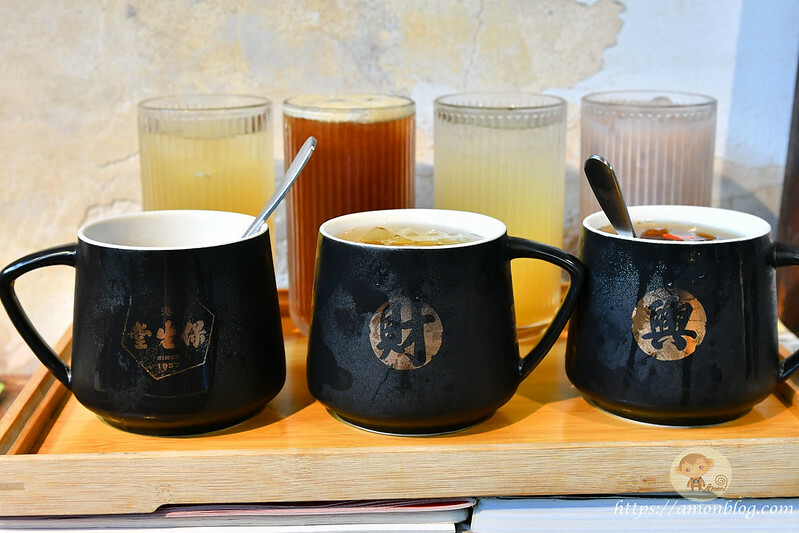 該店主打的飲品就是漢方飲品,有人參咖啡、枸杞咖啡、甘檸涼、肉桂茶、馬鞭草茶等,所以各就點幾杯來試試,枸杞咖啡是以黑咖啡為基底,再加入些許的枸杞來增添口感及甜味,算是還蠻新奇的做法,喜歡喝咖啡的人,可以嘗試看看唷,另外一個因為名字很奇妙的飲品甘檸涼,我們也有點來試飲,喝完後覺得有點像是用甘蔗汁加上檸檬汁後調製而成,微酸微甜,但還蠻清涼消暑和開胃的唷,這杯蠻推的,