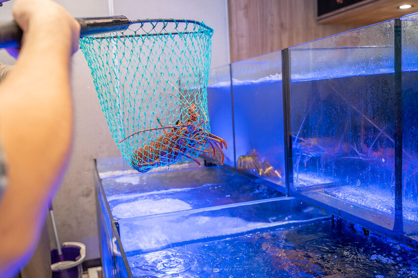 旁邊的水箱裡都是活跳跳的海鮮。