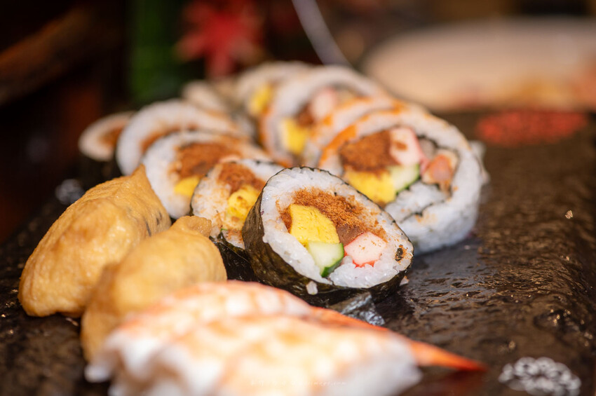 除了生魚握壽司外還有還有花壽司跟鮮蝦、豆皮壽司,不敢吃生魚片的朋友這個也很不錯。