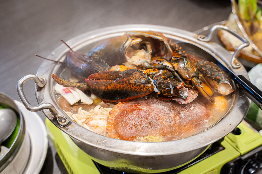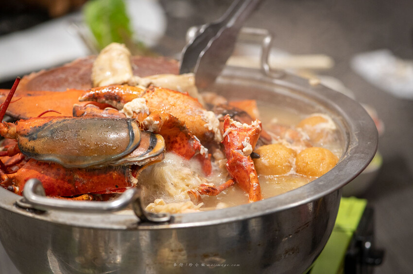 活波龍這蝦螯就是讚,剝開來裡面的肉質超飽滿,太迷人啦。麵包蟹跟裡面的海鮮搭配雞腿肉熬煮的湯底喝上一碗就上癮,超鮮的。