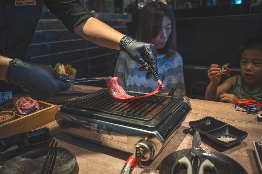 和牛的部分都由這天的服務人員替我們來烤,專業的就是不一樣,除了火候掌握的很好外還特別幫小麥仔要吃得烤熟一點,貼心。